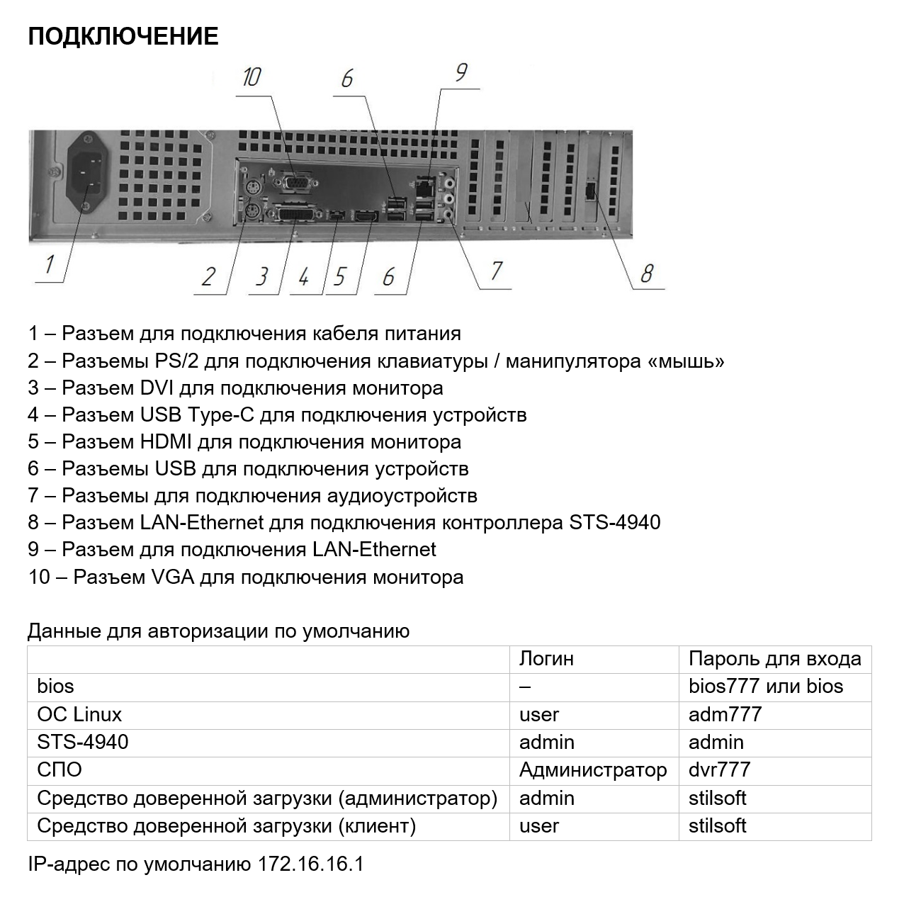 - сервер снабжен контроллером STS-4940